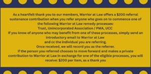 As a member of Warrior at Law © you must sight and agree to our self-executing Non-Disclosure Agreement (NDA) if you participate in consultations, education and/or receive documentation. We will email any member requiring this on a case-bycase basis.